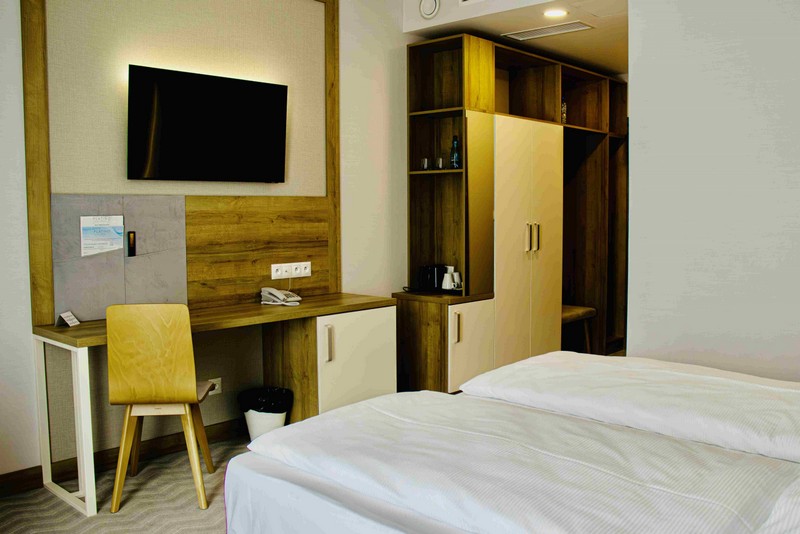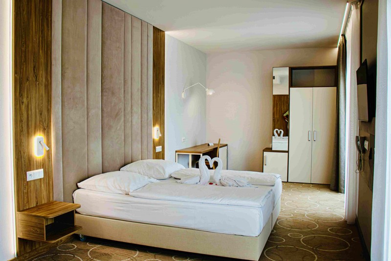 Alle Zimmer verfügen über einen Balkon, Doppel- oder Einzelbetten, je nach Bedarf der Gäste, Badezimmer mit Dusche und WC, ausgestattet mit Haartrockner, beleuchtetem Spiegel, mit einem Vergrößerungs-Make-up-Element, Telefon, Smart-TV, Kühlschrank